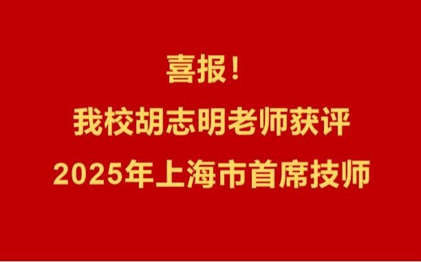喜报!我校胡志明老师获评2025年上海市首席技师