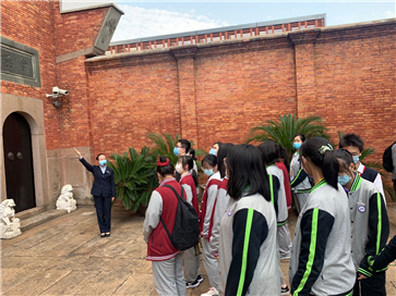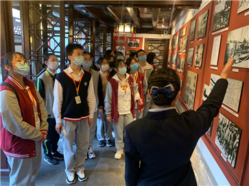 在所有人合影留念后,跟随讲解员的脚步,大家先后参观了三山会馆的底楼和二层建筑,讲解员向我们展示了三山会馆的人文历史、历史上的工人武装起义、具有代表性的文物背景故事、唐三彩的寓意等等。作为一名游客,我们被讲解员清晰的言语、得体的仪表、适度的动作幅度以及娴熟的讲解深深吸引住了,大家听得非常认真,在学习讲解员老师的动作变换、表情管理、语气语速的同时,也是对红色历史的一次了解。