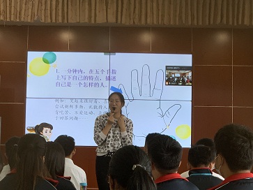 强丽君老师借班上课,以新课导入——我是谁?心理体验——自己眼中的我、心海导航——别人眼中的我、成长训练——我是我吗?课堂总结——我就是我、布置作业六个环节为我们展示了一堂生动活泼、形式新颖的心理课。强老师以活动以为载体,紧扣标题“我是谁?”,通过问题设置引导学生正确认识自我、树立“天生我才必有用”的自信。总体来说,该堂课既训练了学生学会自我评价和对他人进行正确,教学设计新颖,活动丰富,学生参与热情高。