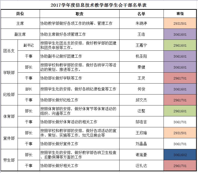 以下为新一届信息技术教学部学生会的名单