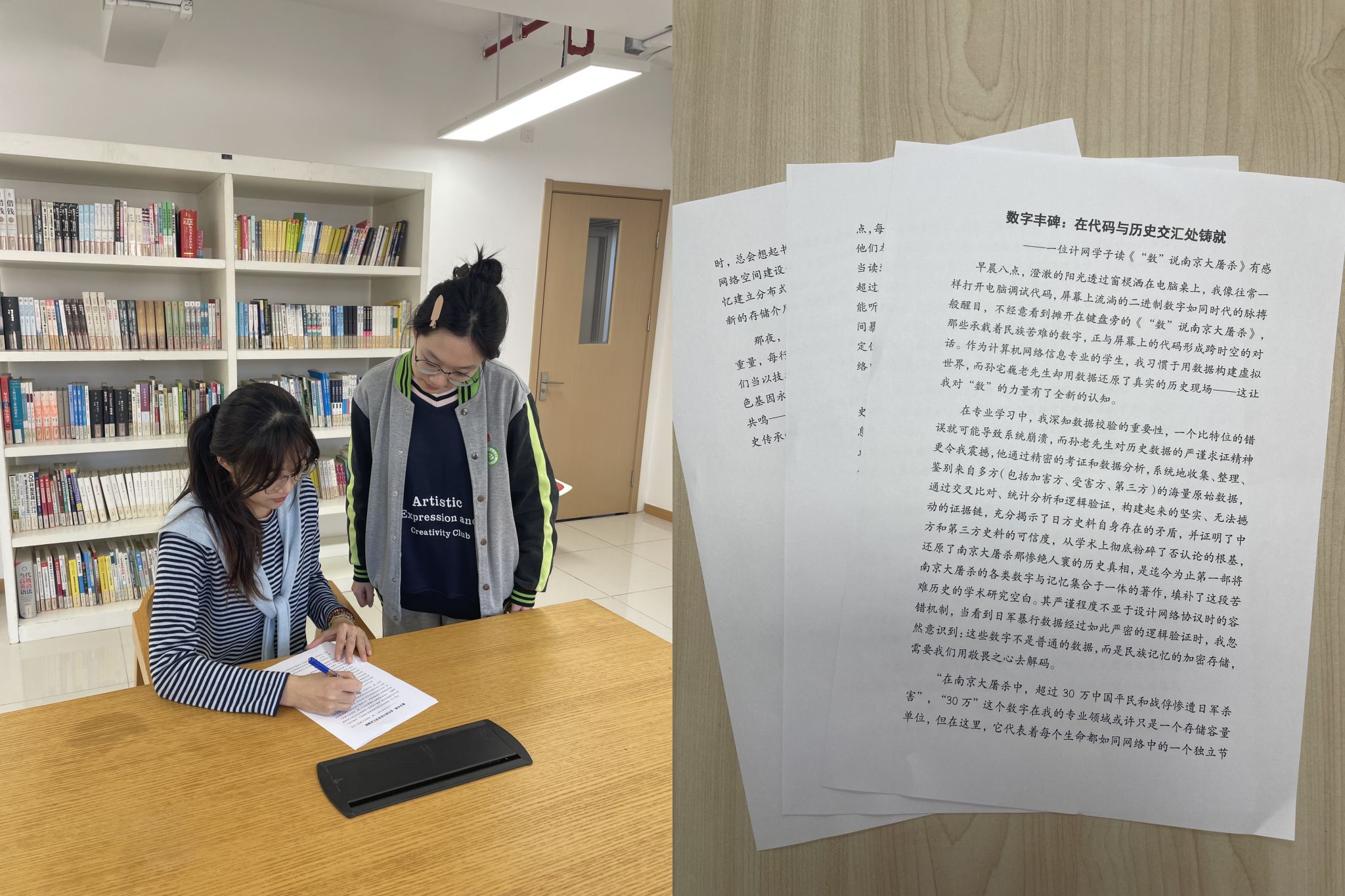 自活动启动以来,校图书馆迅速联动学生科、语文教研组,形成育人合力。通过广泛动员、精准辅导与校级遴选,在短短两周内收到征文66篇。各部门充分发挥专业优势,从作品立意到文字锤炼给予学生全方位指导,为进一步提升指导效率与创作视野,本次活动创新引入AIGC技术辅助论文修改。指导教师借助智能写作工具,学生在构思阶段即可快速拓展思路、优化结构,教师则利用AI评阅系统,实现对语言表达与逻辑层次的高效诊断与反馈,使辅导更具针对性。AIGC的融入不仅丰富了指导手段,也激发了学生的创作潜能,推动了传统写作教学向“人机协同、智慧共创”的新模式探索,确保了参赛作品的高质量与深刻性。