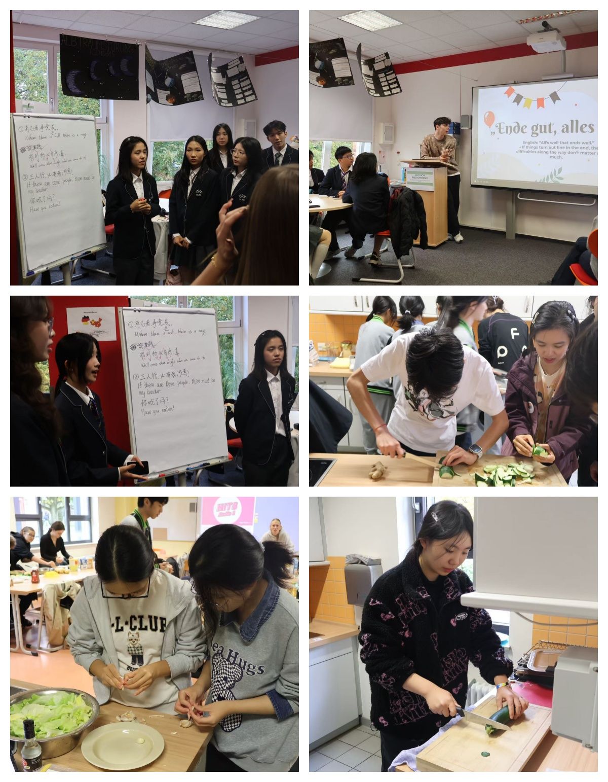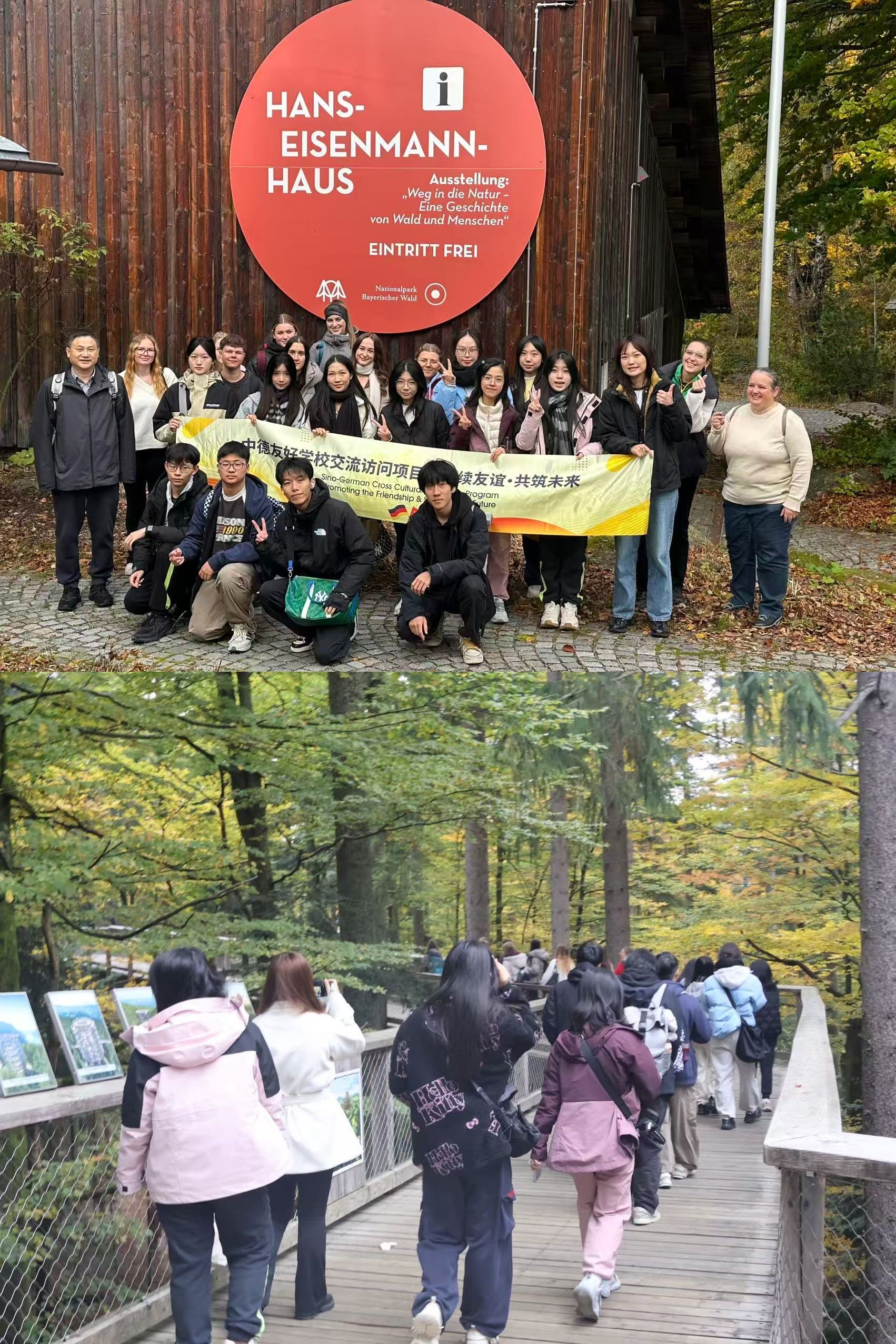 交流期间,我校学生积极参与多项文化交流活动。在语言互学环节,中德学生互相教授本国语言,从德语问候到汉语成语,在轻松愉快的氛围中增进理解;在美食工坊,双方学生共同制作中德特色菜肴,通过美食传递文化;在森林公园徒步活动中,两国学子并肩同行,用行动诠释友谊的真谛。
