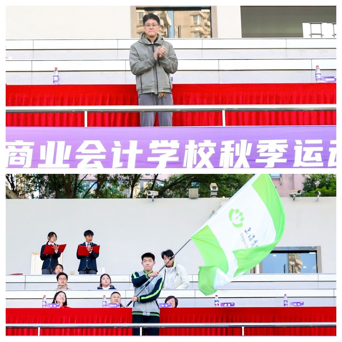24级中高贯通大数据与会计专业王瑶和25级金融事务专业金中旭同学主持运动会开幕式。