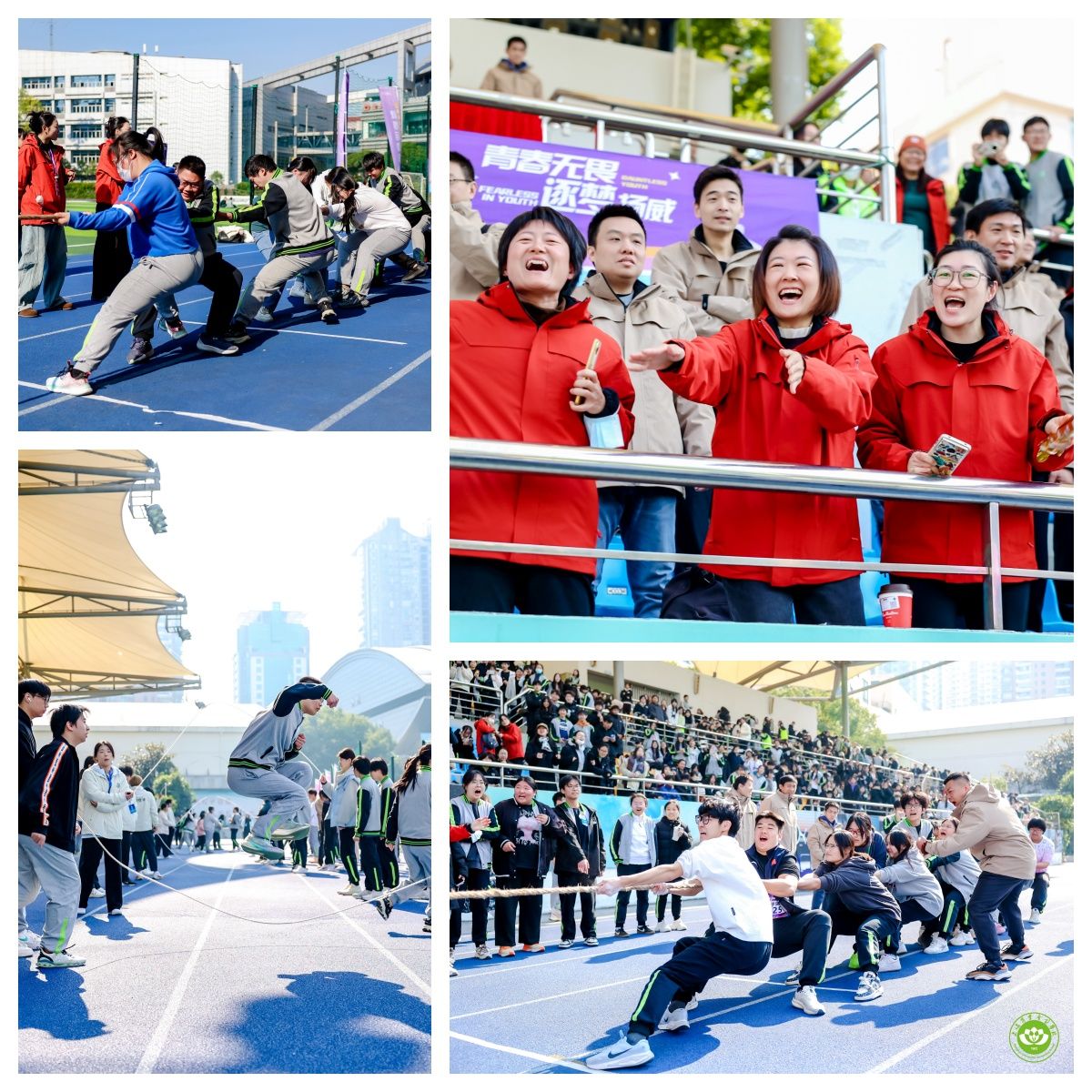 跳长绳比赛中,绳子在空中高速旋转,选手们敏捷穿梭,配合无间。拔河比赛是团队力量的较量,每个人咬紧牙关、重心下沉,为集体荣誉拼到最后一刻。观众席上的呐喊声此起彼伏,为每一次全力冲刺加油助威。