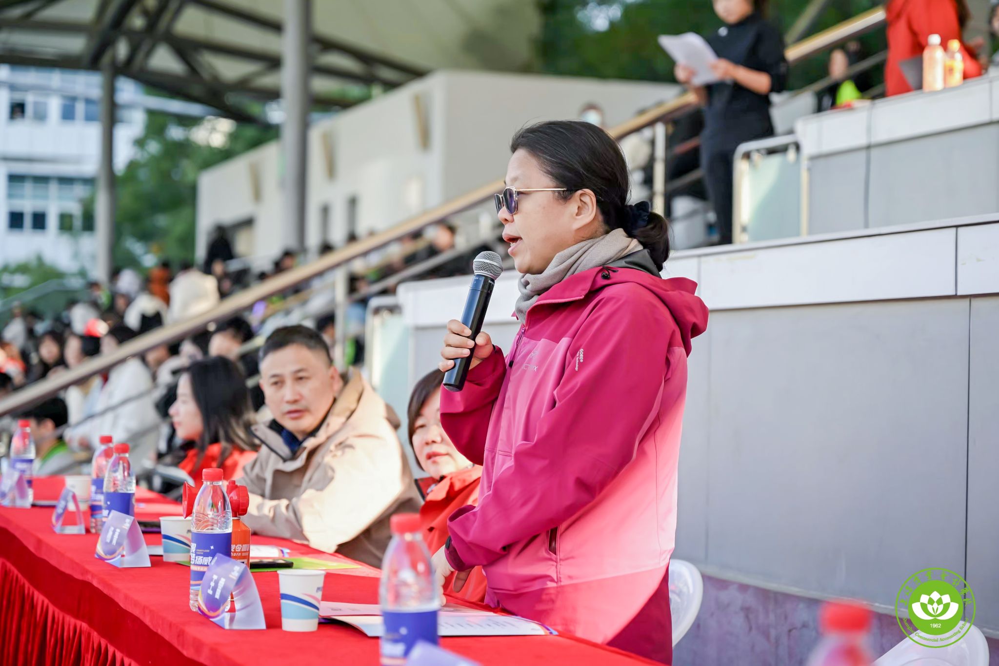 杨菁校长在开幕词中强调体育对强国建设和青年成长的重要意义,鼓励学子以“青春无畏,逐梦扬威”为信念,奋勇拼搏、尊重规则、团结协作,展现商会学子风采。同时寄语教师积极参与,共筑校园体育文化,温暖而坚定的话语点燃了全场热情。