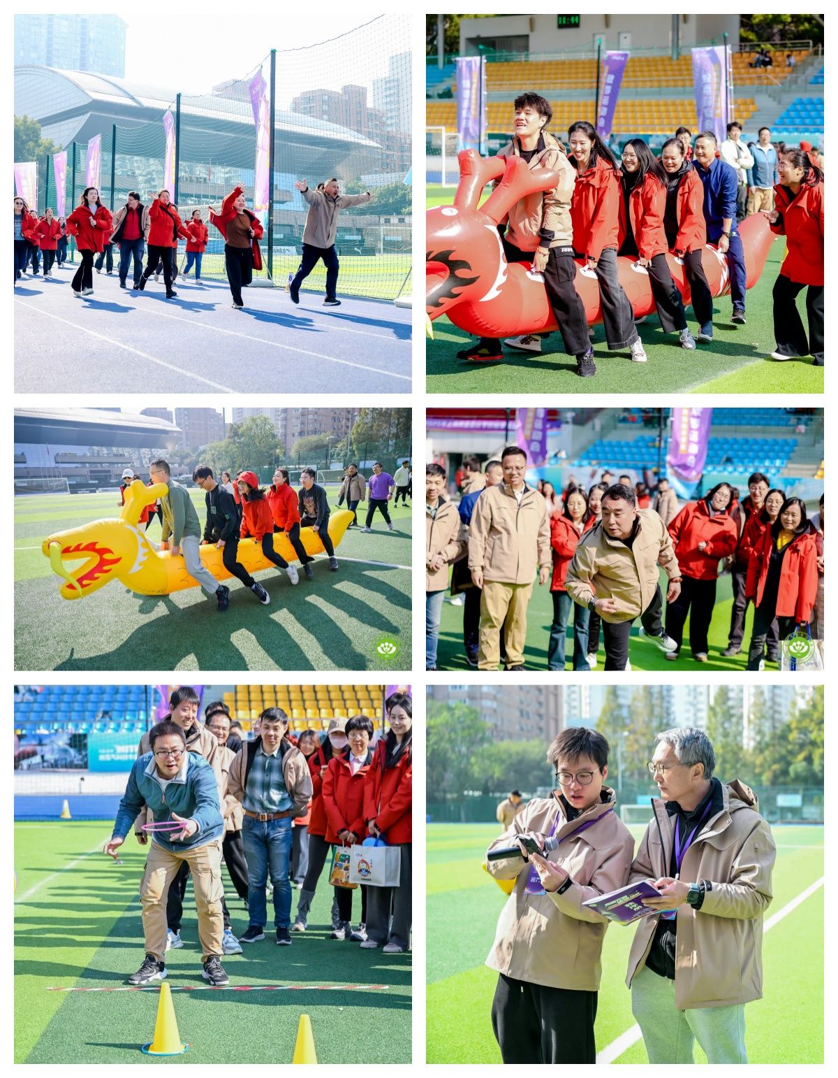 全体教职工参与400米跑,迅速点燃运动激情。平日里站在讲台上的老师们,此刻换上轻便的运动服,精神抖擞地投入比赛。旱地龙舟中,老师们步调一致、奋力划桨,龙舟在地面“飞驰”,笑声与加油声交织;套圈比赛中,他们瞄准目标,全神贯注,每一次精准投掷都引来阵阵欢呼。无论输赢,他们都用笑容和热情诠释了“永不放弃”的体育精神,也让学生们看到了老师课堂外的活力与激情。