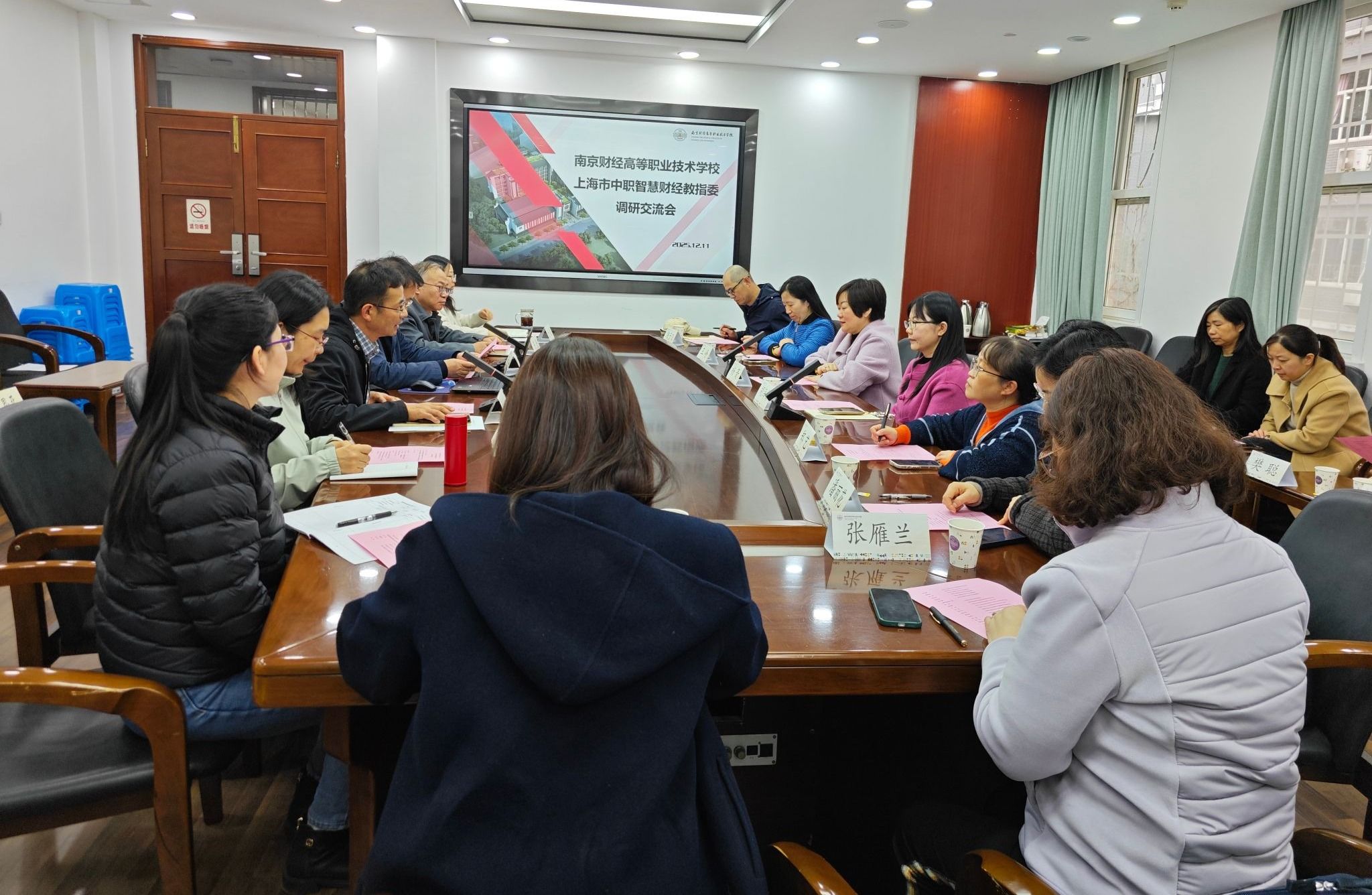 调研团队来到南京财经高等职业技术学校,在校方引导下参观了校史馆、财税邦实训中心等,了解学校实训基地的建设布局与运行模式。座谈交流会上,南京财经高等职业技术学校姚峰校长向调研团队做了“凝聚育人力量,打造育人品牌——扎实推进五年制高职高质量发展的南财实践”专题汇报,周会林主任及其他负责人分别就“大数据与会计专业建设”“会计系实训基地建设”“AI 技术融入课程”“大数据与财务管理专业资源库建设”“教材建设与技能大赛经验”等方面进行专题汇报。汇报介绍后,双方就财经专业数智化转型、“双师型”教师队伍培养、专业资源库建设、实训教学与岗位需求精准对接等核心问题展开互动交流,形成多项务实共识。