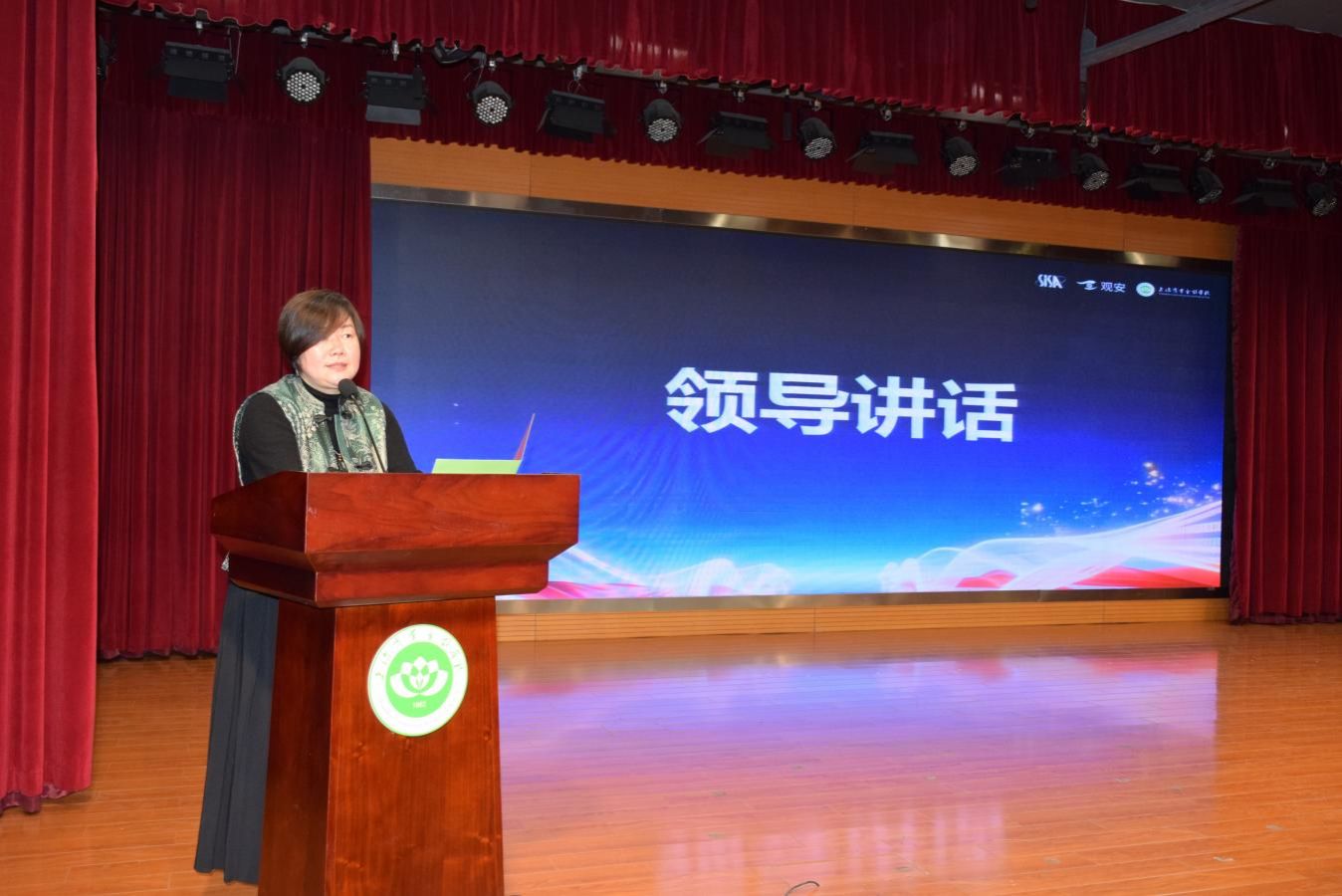 校长杨菁做总结讲话,对首届竞赛的组织实施和育人成效给予充分肯定。她表示,赛事落幕不是终点,而是新的起点。学校将继续深化“岗课赛证”融合,把法律法规课程讲活,把安全素养教育做细做实,把行业最新标准融入教学全过程,持续加强与政、行、企各方的协同合作,将“清荷·智慧网盾”打造成为具有示范意义的职业教育产教融合品牌项目。