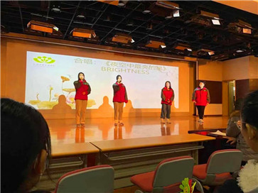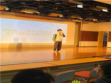 第一个节目就是舞蹈社带来的舞蹈《not today pretty savage》舞蹈充满着活力与激情。接下来是朗诵第一组选手,来自0562001班的张奕飞 赵一鸣 王懿乔 张偲佳四位同学为大家带来的朗诵《中国少年说》,他们的语言鼓舞着我们,我们要为祖国贡献自己的力量。接着是2752001陈亦洋同学朗诵《沁园春雪》在脑海里出现北国壮丽的雪景,纵横千万里,大气磅礴、旷达豪迈。接下来是2732001吴怡赟同学带来的朗诵《元宵夜》从他的语言里我们可以感受到在抗议期间,每一个工作人员舍小家为大家,积极为社会贡献自己力量。2751901班的BRIGHTNESS女团《夜空中最亮的星》用活泼的歌声驱走了刚才的严肃。