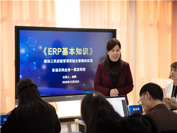 为贯彻落实《国家职业教育改革实施方案》和《上海职业教育高质量发展行动计划(2019-2022年)》,切实推进“三教”改革,聚焦课堂质量,提升教学品质,促进会计专业课程改革,结合上海市中等职业学校示范性品牌及品牌专业在线开放课程建设的契机,上海市中职财经专业中心教研组组织了《ERP基本知识》在线开放课程的公开课,于2020年12月25日在上海商业会计学校智慧云实训室举行。