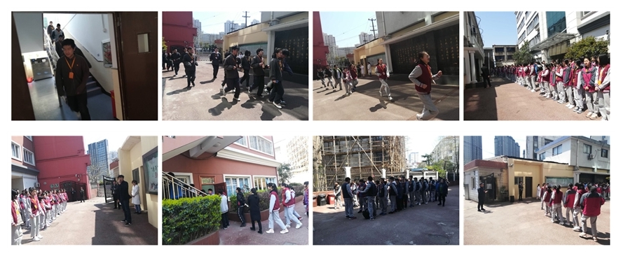 中午12点40分,警报拉响,消防应急疏散演习正式开始。各班学生在班主任老师和各楼层指导老师的引导下,按照指定路线快速有序地疏散到指定位置。据统计:12点48分,学生已经全部疏散到指定位置,并以班级为单位集合完毕。疏散演习结束后,学生们又迅速有序地返回到教室准备上课。在整个疏散和返回教室过程中,用时只有15分钟,且没有拥堵和推搡现象发生。本次消防应急疏散演习圆满成功。