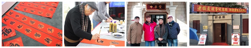 本次“老校友泼墨送春联,职教源感恩迎新春”活动邀请了著名书法家、原商会校教师许宝驯老师的弟子来自上海市书法家协会的叶国新、陈利葆、曹洪畴和殷国明等四位60年代毕业的校友参加。