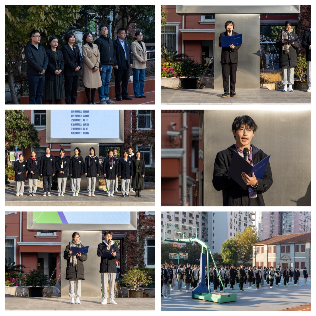 本次升旗仪式由0442101班严梓譞和1052301班张萍主持。国家奖学金获得者0452102班顾婷婷和星光计划获奖者1052101班戚欣怡担任光荣升旗手。在雄壮嘹亮的国歌声中,五星红旗冉冉升起,全体师生庄严郑重,目光一致,注目国旗。