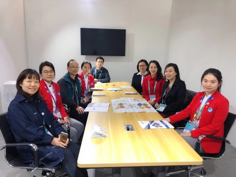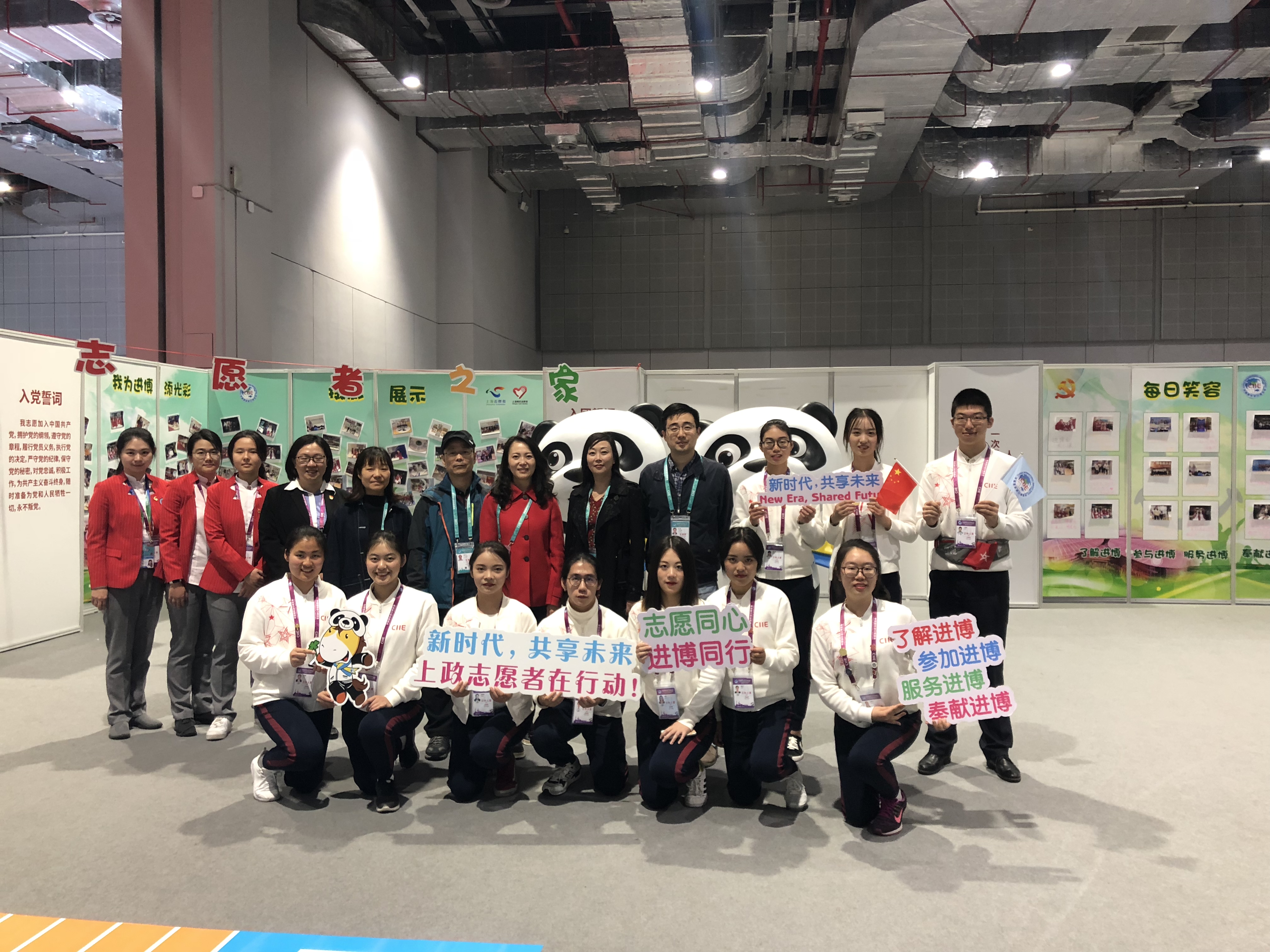 2018年11月10日周六下午,我校校领导班子:陈文珊校长、乔蔓菁书记、施汉忠副校长、陈震书记、王洁副校长一行五人前往上海国家会展中心,对参加中国国家进口博览会志愿者工作的师生团队进行实地慰问。