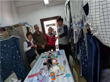 安全会议结束后,顾老师、吴老师和物业章纪军经理一起深入学生宿舍13号楼和14号楼进行安全检查。重点检查学生宿舍是否存在大功率充电器、是否私自拉电线等安全隐患。同时对宿舍走廊的应急灯、消防栓等设施设备也进行了一一检查。在检查中发现的问题,立即着手维修和更换。