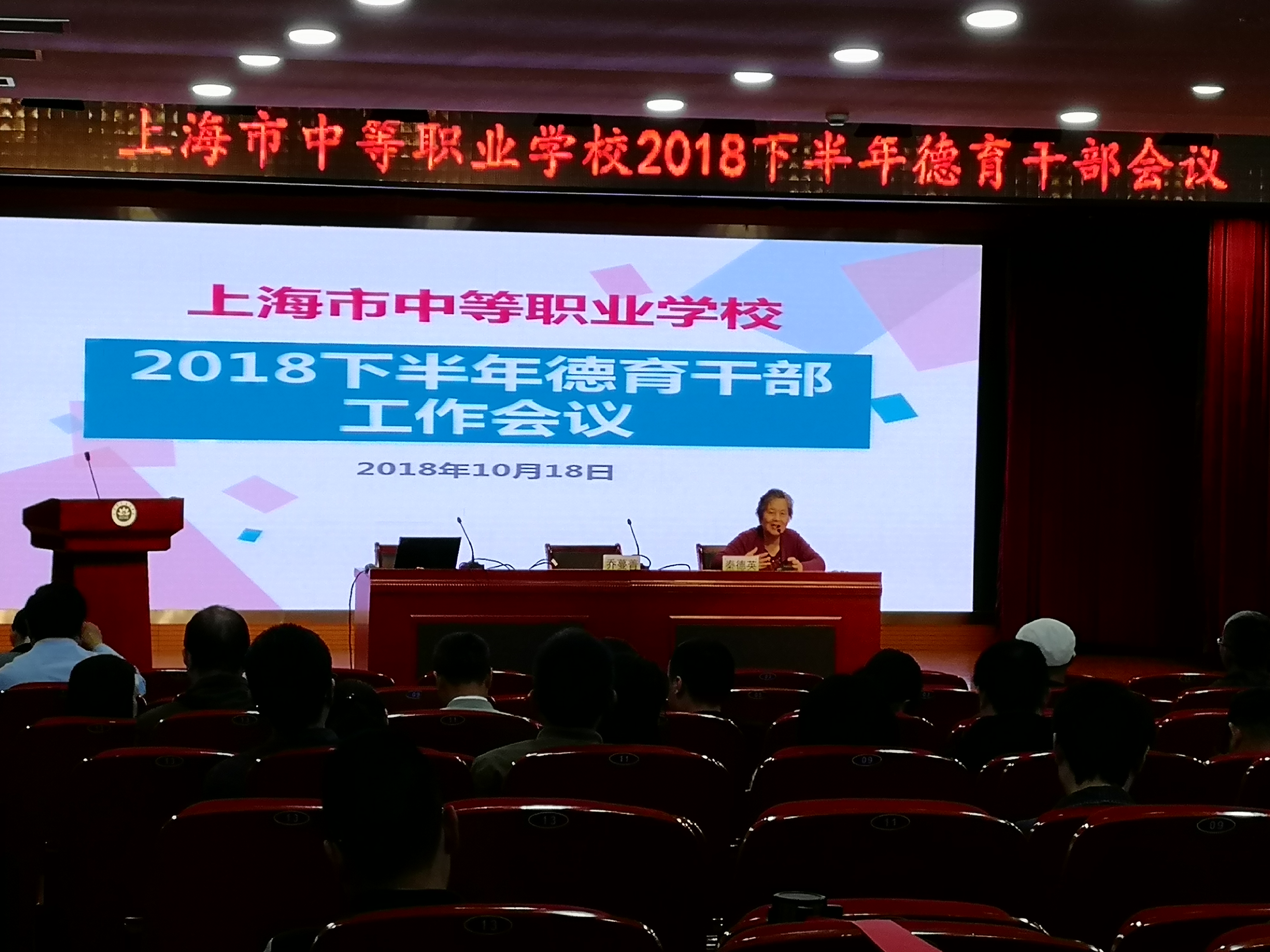 2018年10月18日上午8点30分,上海市中等职业学校2018年下半年德育干部工作会议在上海商业会计学校陆家浜路校区1号楼4楼学术礼堂举行,来自上海市70余所中职学校的德育校长、学生科长共计120余人参加了本次会议。会议由上海市职教协会中职德育专委会会长乔蔓菁主持,中职德育专委会秘书长秦德英出席会议。