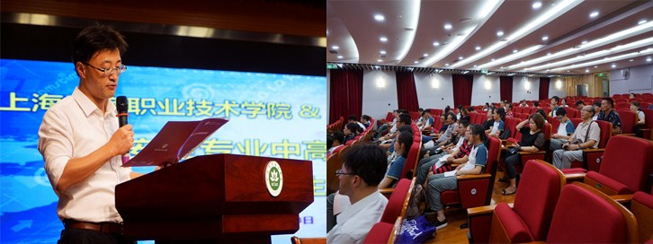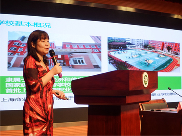 上海工商职业技术学院胡家秀副校长讲解了学院培养方案、教学设计、招生、考证、就业情况和学生竞赛获奖情况等中高职贯通专业概况,并详细分享了学院的建设成果,展现了学校雄厚的师资力量和条件优秀的实训基地,最后在办学特色环节,给在座各位展示了学校高职教育国际化、具有学校特色校企合作办学品牌、智慧校园和先进的“C-Match课程地图”教学系统等学校教育教学特色,期待与台下的学子三年后在新的学习环境中相遇。