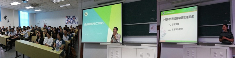 2018年9月22日,中高职两校(上海电子信息职业技术学院、上海商业会计学校)利用中秋假期休息日,于上海应用技术大学联合召开了18级贯通学生家长会。全体学生和家长共同出席。