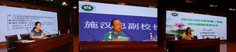 为了进一步加强学校与家庭、教师与家长之间的密切联系,增进每一位家长对学校工作的了解,实现家校携手共同培养孩子的目标,我校于9月14日18:00,在1号楼4楼小礼堂举行了18级新生家长会。副校长施汉忠老师、教务处副主任苏昌蕾老师、学生处副主任陈霞老师出席了家长会并分别做了介绍。