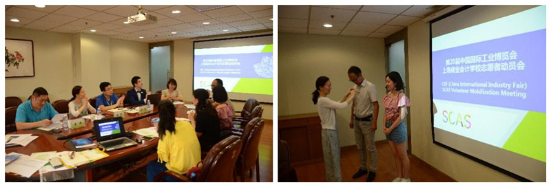 为了再次给中国国际工业博览会贡献清荷力量,一支由7名商会校骨干教师和4名上海商学院中高职贯通学生组成的清荷师生志愿者队伍迅速集结完成,主动承担起职业学校的社会责任,并用高度的热情投入到前期准备工作中。各级领导给予清荷志愿者团队充分的信任和支持,9月14日下午,学校召开了第二十届工博会志愿者动员大会,会议由陈震书记主持。上海市经济和信息化委员会外经处张莉副处长在会上,对上届清荷志愿者团队的表现给予充分肯定,并用“你们是我们有力的支撑,我们是你们坚强的后盾”鼓舞和激励清荷志愿者在此次工博会上继续保持专业的外事接待水平,将清荷人的文化与热情带给全世界。基于此情况,今年在分配外事接待任务时,经信委领导委以重任:6名老师和1名学生分别担任各领馆领导巡官贴身翻译,4名学生担任巡馆英语讲解员,这样的安排是希望清荷志愿者团队通过协调、沟通和讲解,将工博会主题更好的呈现给参展嘉宾。