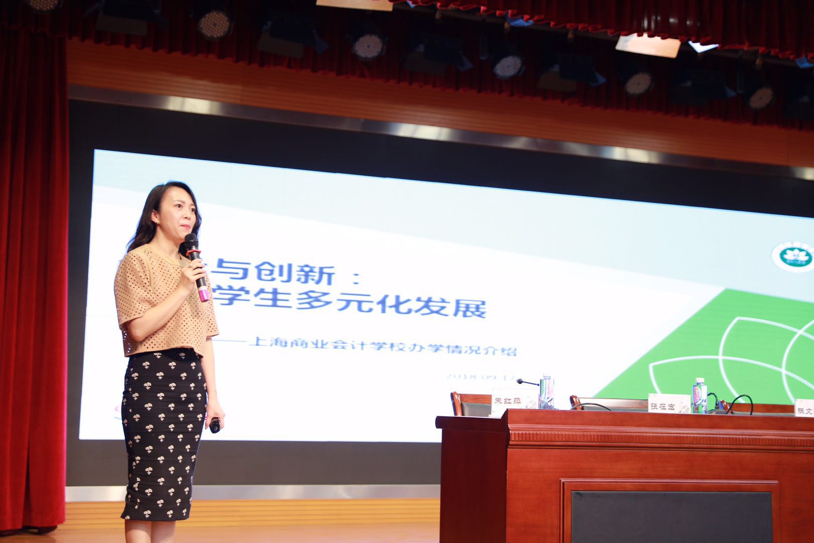 校长陈文珊首先代表商会校对各位家长的到来表示热烈欢迎,作了题为《传承与创新: 服务学生多元化发展》的讲话,从学校概况 、专业介绍 、校园文化、国际合作四方面向与会家长和学生介绍了学校办学情况,指出学校的使命与愿景首先是满足学生多元化发展需求,培养具有“清荷素养、沪商精神” 的“三化三型”技术技能人才;注重贯通培养目标与人才培养优化;完善贯通培养的课程结构和制度;加强教学合作和国际项目课程引入。陈校长运用视频向大家分享了该专业学生在国际交流合作中的优势,在国内外比赛中取得的斐然成果。表示学校为每一位学生搭建成才的舞台,让清荷学子更出彩,也希望学生树立明确的发展目标,顺利完成贯通培养。