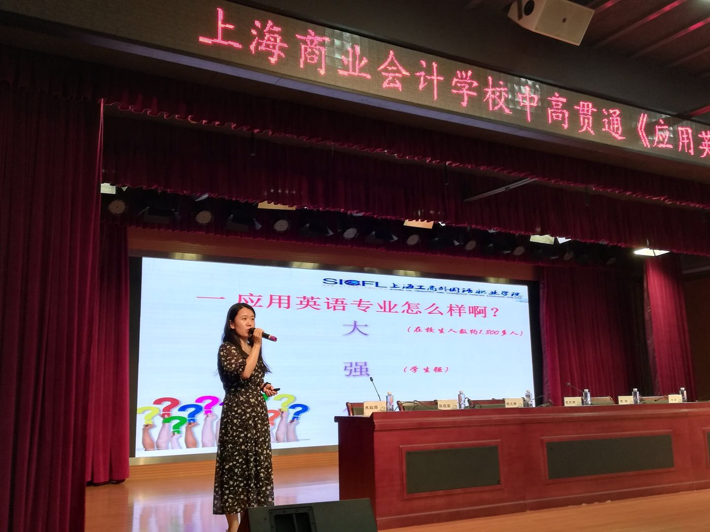 9月18日晚,经贸二部在学校小礼堂隆重举行了2018级中高职贯通“应用英语”专业新生开学典礼暨家长会,出席会议的有上海工商外国语职业学院院长毛忠明、英语学院副院长陈诚、上海商业会计学校校长陈文珊、教务处主任张在宏、学生处副主任冯莉,中高职贯通“应用英语”专业全体新同学、家长和班主任。会议由经贸二部主任朱红萍主持。