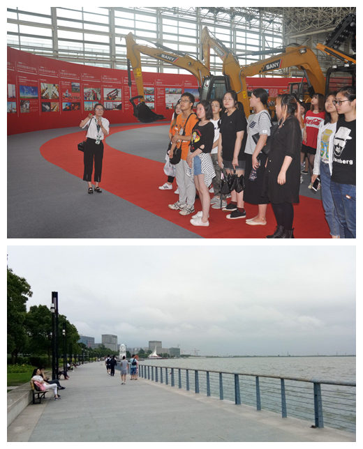 7月5日17级学生认知实习的参观学习来到第二天。早上8点一刻准时发车前往目的地。两个小时后,我们来到了风景宜人的滴水湖。滴水湖又名芦潮湖,位于浦东新区南汇新城镇,距离上海市中心约76公里,是南汇新城的中心湖泊。沿着湖畔,听着水中发出清脆的波浪声,感受着轻拂的微风,实在是这炎炎夏日里一种难得的享受,同学们纷纷拿起手机拍下照片,为上海的又一个经济发展重地清秀的风景点赞!
