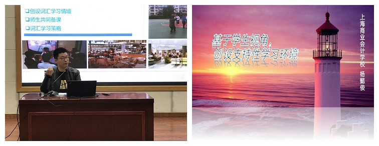 上海商业会计学校杨懿俊老师应宁波市教研室邀请在“沪、杭、宁、甬”四市中职英语骨干教师联合培训活动中做了题为《基于学生视角,创设支持性学习环境》的学术报告,杨懿俊老师谈到了教学评价应基于学生立场和学生视角,紧紧的围绕学习目标。教师在上课前应研究学生的学情,根据学生的学习习惯、学习需求、学习兴趣、认知倾向来开展教学,为学生营造一个支持性的学习环境。杨老师基于商会校的工作实际,运用了大量的案例进行阐述。在报告中,杨老师介绍了商会校英语组开展的一系列有利于学生学习的英语活动,如:英语趣配音竞赛,这样的课后活动对英语课堂教学起到了很好的促进作用。商会校优质的国际交流平台也给学生提供了非常有价值的支持性学习环境。清荷国际交流学生团队(SCT)的成立为学生提供了很好的锻炼平台,提高了学生的英语学术能力。SCT的学生通过接待国外师生并与他们积极交流,不仅自身的英语能力得到了提高,回到班级后,在平时的课堂学习中,也起到了很好的引领作用。