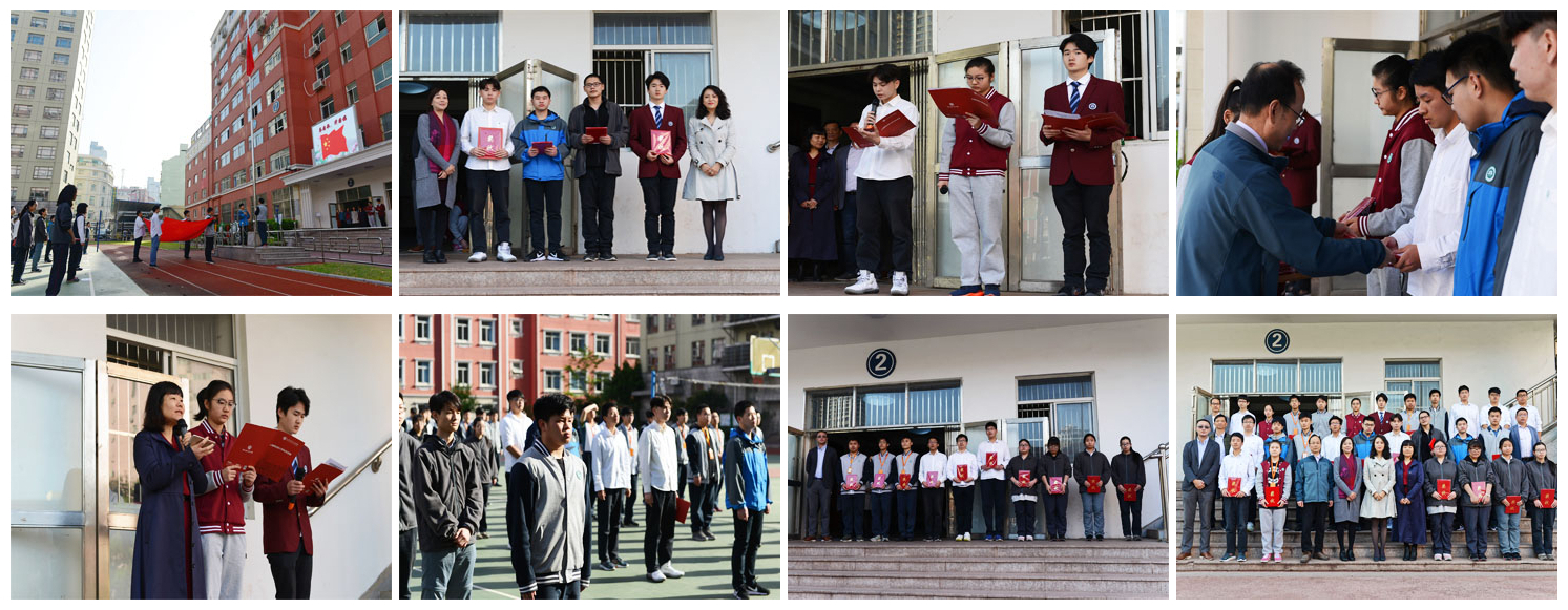 7:45分,5个班级的同学集合完毕,吴健鸣主任宣布本次升旗仪式正式开始。来自3061701班袁育豪、2961601班级的董世元、3061602班级的宋晓辰、2961701班级的张超杰的4位同学组成的国旗护卫队,踏着整齐的步伐护送国旗到达旗杆底下;来自3061601班的兰蓝天涯和2961701班级的邱文杰将五星红旗缓缓升起。