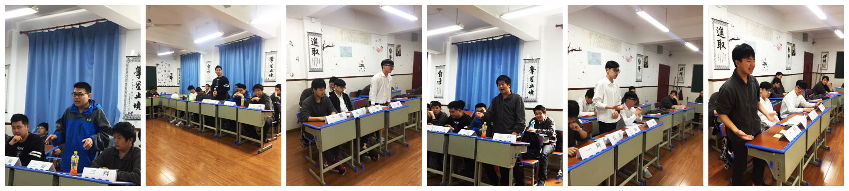 班级同学推选了部分学生代表作为“评委”,并选取六位同学作为“正方”和“反方”辩手参与比赛,在双方简单自我介绍后,双方展开辩论,正方认为中职学生毕业后应该选择进入社会就业,而反方则坚持中职学生毕业后应该继续升学读书。