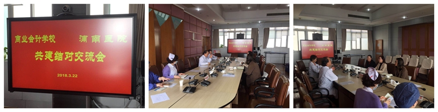 为深化与校外共建单位的联系,拓宽和创新志愿服务的模式,优化志愿服务活动的内容与内涵,促进医校合作资源共享,持续推进我校志愿服务“三三模式”的全面开展,2018年3月22日下午,上海商业会计学校党委书记乔蔓菁,学生处冯莉、陈霞和奚健盛老师一行四人来到上海市浦东新区浦南医院开展了2018年度共建单位的结对交流会。
