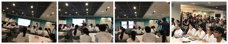课后,专家的点评说出了观摩教师的心声,“传统黑板”、“现代化白板”和“学生手中的平板”三板完美的交织在一起,知识在课堂间流淌;动态数学软件GeoGebra的运用,动态数学视频的展示更是利用信息化手段突破了教学难点;可以用数学方法解决实际问题正是职业教育的应有之义和神圣职责。