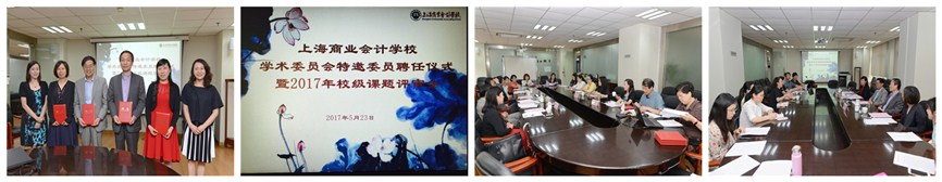 2017年5月23日下午13:30至17:30,上海商业会计学校第一届学术委员会特邀委员聘任仪式暨2017年校级课题立项评审会在我校3号楼15楼大会议室举行。学校学术委员会特邀委员冯伟国、乔刚、匡瑛、胡秀锦四位专家,校领导陈文珊校长、乔蔓菁书记,申报2017年10项校级课题的主持人、课题组成员和科研中心工作人员参加了会议。