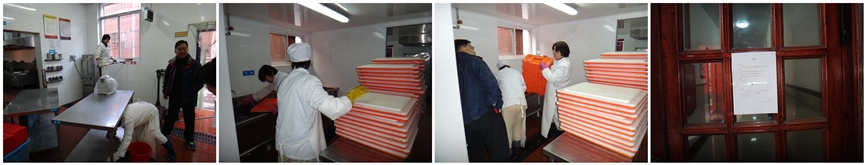 然而,南校区的食堂早已一片忙碌,炊事师傅们全体出动,将食堂的饭盒、碗筷、器皿全部送进蒸箱消毒,用高温蒸汽将细菌消灭干净。所有的窗、桌、推车、板凳也都经历了一场“大扫除”,阿姨们用手中的拖把、抹布将它们擦得锃锃亮。就连装学生盒饭用的保温箱,也被洗刷得干干净净,纤尘不染。