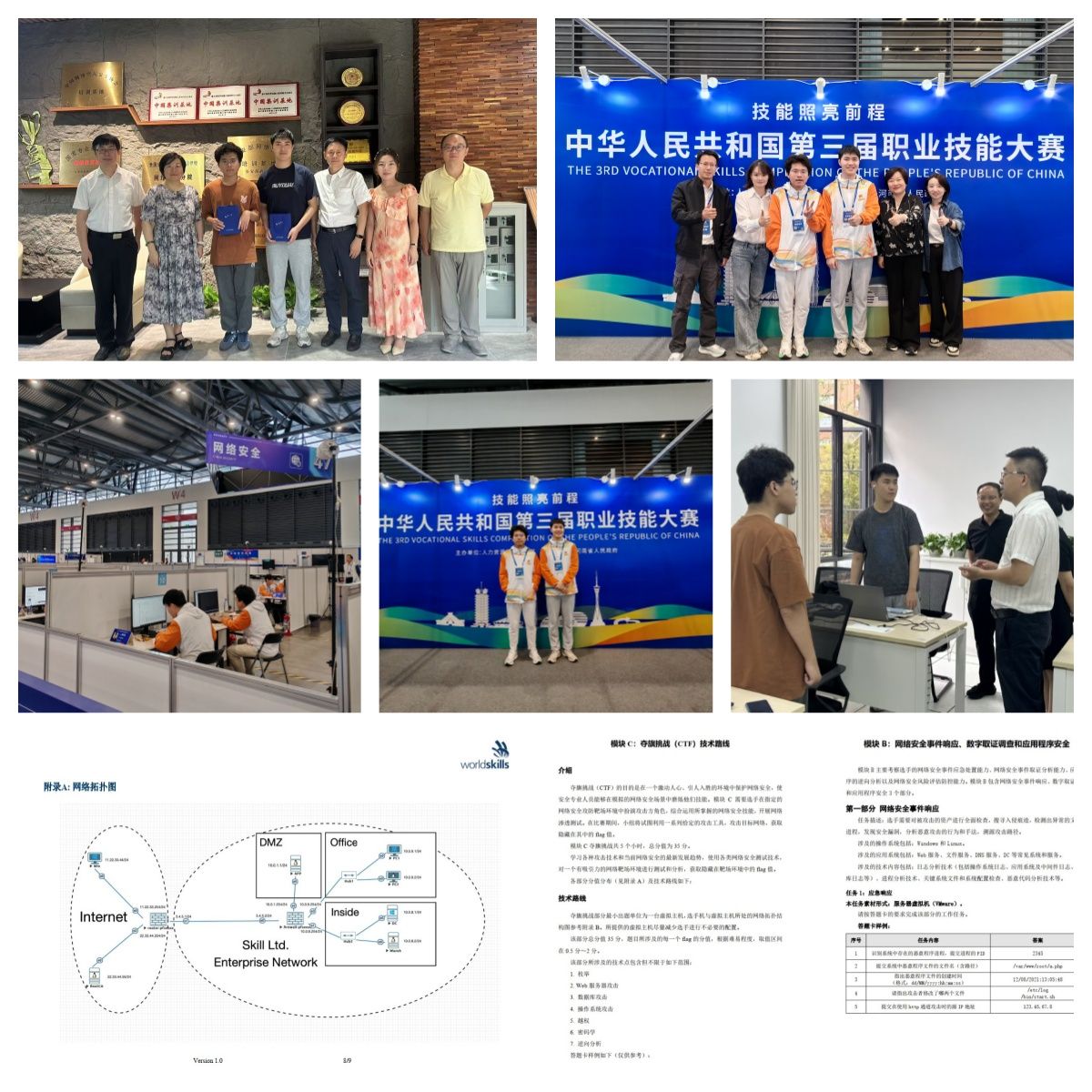这一成绩的取得,是我校网络信息安全专业建设的重要里程碑,也是专业中高、中本贯通人才培养的重要成绩。荣誉背后,是两位同学日复一日的刻苦钻研与不懈坚持。从清晨到深夜,他们在实训室里反复调试脚本、复盘漏洞,将每一次挫折转化为前进的阶梯。教练团队与指导老师全程陪伴,精准施策,在关键时刻给予战术指导与精神鼓励,助力选手突破瓶颈、持续精进。集训期间,市、区两级人社领导高度重视,多次亲临基地关心慰问,为选手提供坚实保障。学校领导和各部门也全力支持,统筹资源,为选手搭建起通往全国舞台的桥梁。