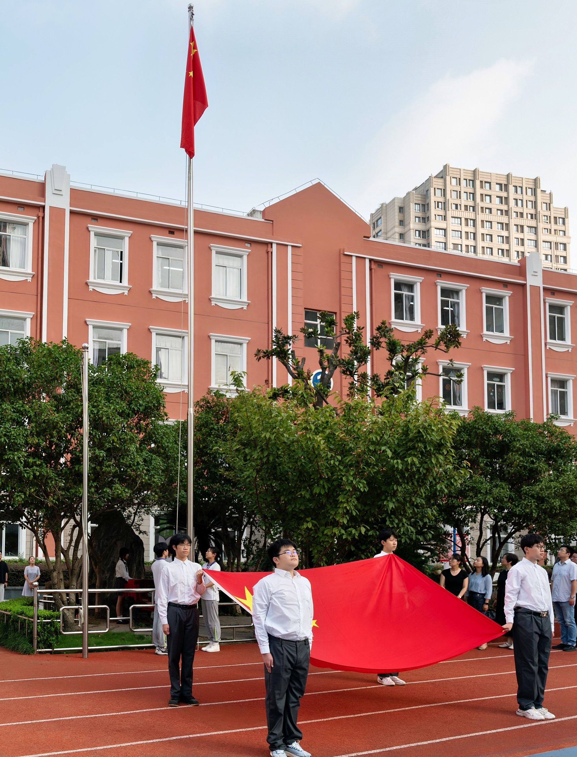 金秋十月,丹桂飘香。在新中国成立 76 周年的喜庆氛围中,上海商业会计学校财会金融教学部于10月13日清晨庄严举行 “智赋新财金,技能筑强国” 主题升旗仪式。师生齐聚操场,将爱国热情与专业追求紧密相连,奏响技能报国的青春篇章。校长杨菁、党委书记陈震、副校长龚丽、副校长钱亮于等校领导莅临现场,与师生共同见证这一时刻。本次升旗仪式由财会金融教学部24级中高贯通大数据与会计一班赵德轩、斯鑫妍两位同学主持。