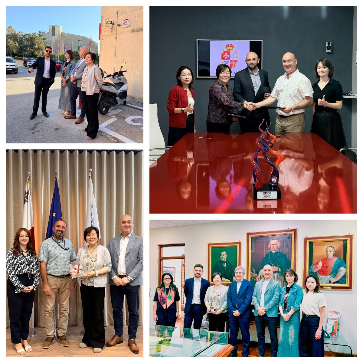10月9日至10日,出访团队转赴马耳他,延续 2024 年“一带一路创新赋能营”的成果开展回访。在马耳他多美学院(Domain Academy),调研其国际课程认证体系,并签署了合作备忘录。访问马耳他艺术科技学院期间,双方围绕学生互访、短期研修及师资交流计划展开深入研讨。参访马耳他大学期间,重点学习其“创新创业教育支撑体系 ”。马耳他大学在创新创业教育、跨文化课程开发等方面具有独特优势,该校在校企合作、项目孵化及国际学生实践平台建设方面的经验,为我校探索多层次国际合作提供了启示。