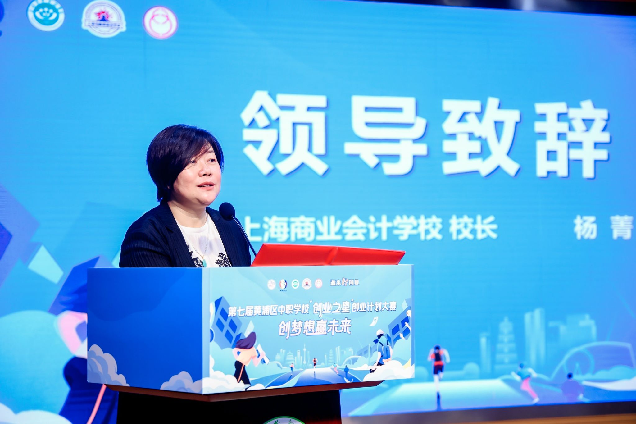作为大赛主办方之一,校长杨菁首先向所有参与单位、指导专家及参赛团队致以衷心感谢。她表达,本届赛事的成功举办离不开各界的鼎力支持。她指出,正是这种多方协同的积极投入,才使赛事得以高质量呈现。杨菁校长在致辞中强调,经过六届的持续发展,黄浦区中职“创业之星”大赛已确立其作为区域创业教育标杆平台的地位。该赛事通过系统化的项目实践机制,显著提升了参赛学生的创新思维转化能力与商业实践水平,实现了“以赛促教、以赛促创”的育人目标。
