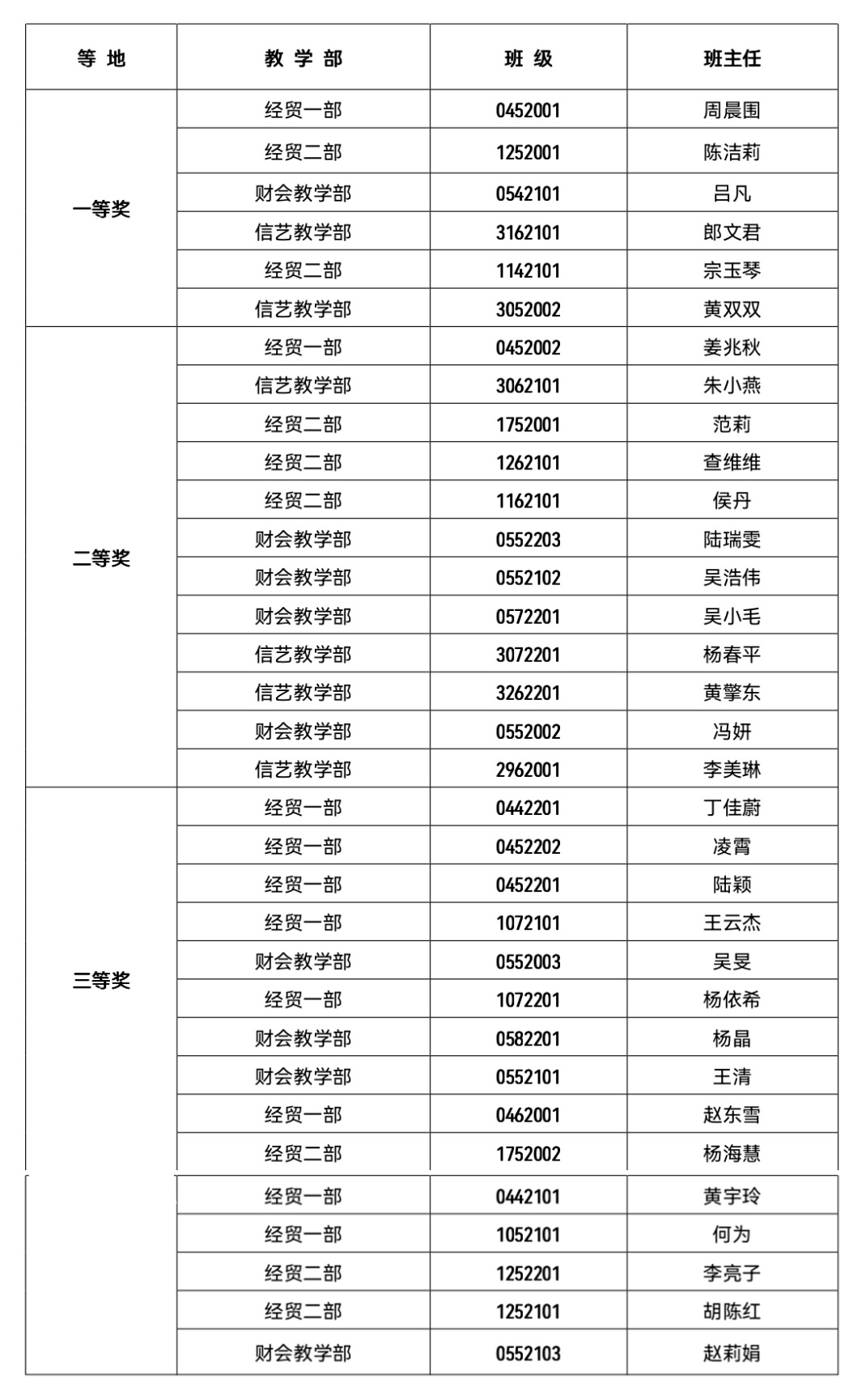 12月,学校黄浦校区组织教师代表和学生代表组成评议组,对各班的“温馨教室”创建进行评比,通过综合评分评出一等奖6个、二等奖12个、三等奖 15个以及优秀奖35个。