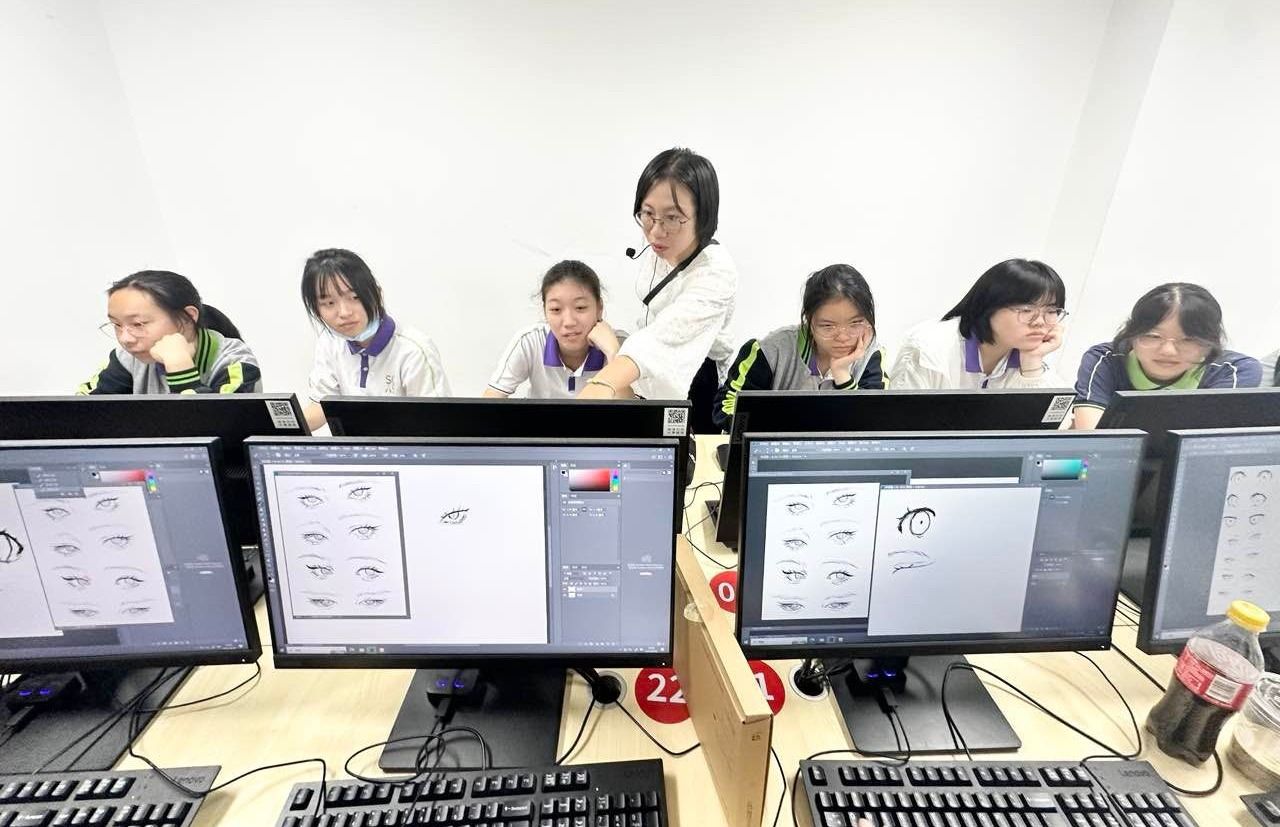秋日胜春朝,教研意正浓,王莉萍名师工作室本学期首场听评课活动如期而至。在王莉萍老师的带领下,工作室成员李宇超、李亮子老师一同走进了吴依伦老师充满创意的数字绘画课堂,共同观摩了《人物五官设计——眼睛》这节机房课。课程结束后,一场热烈而深入的点评交流随即展开。