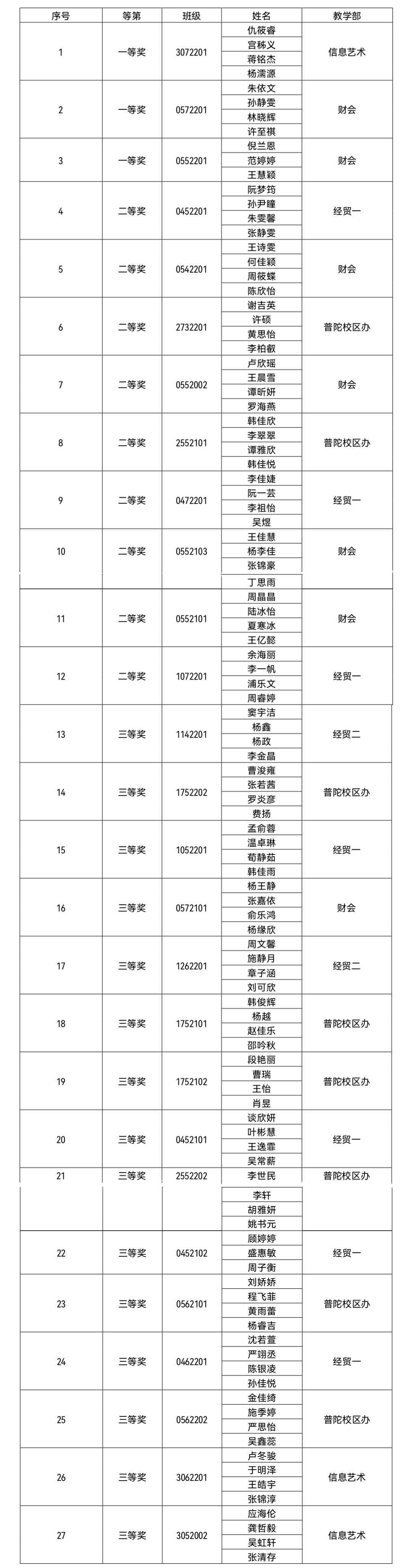 最终团体赛有27个班级获得奖项。