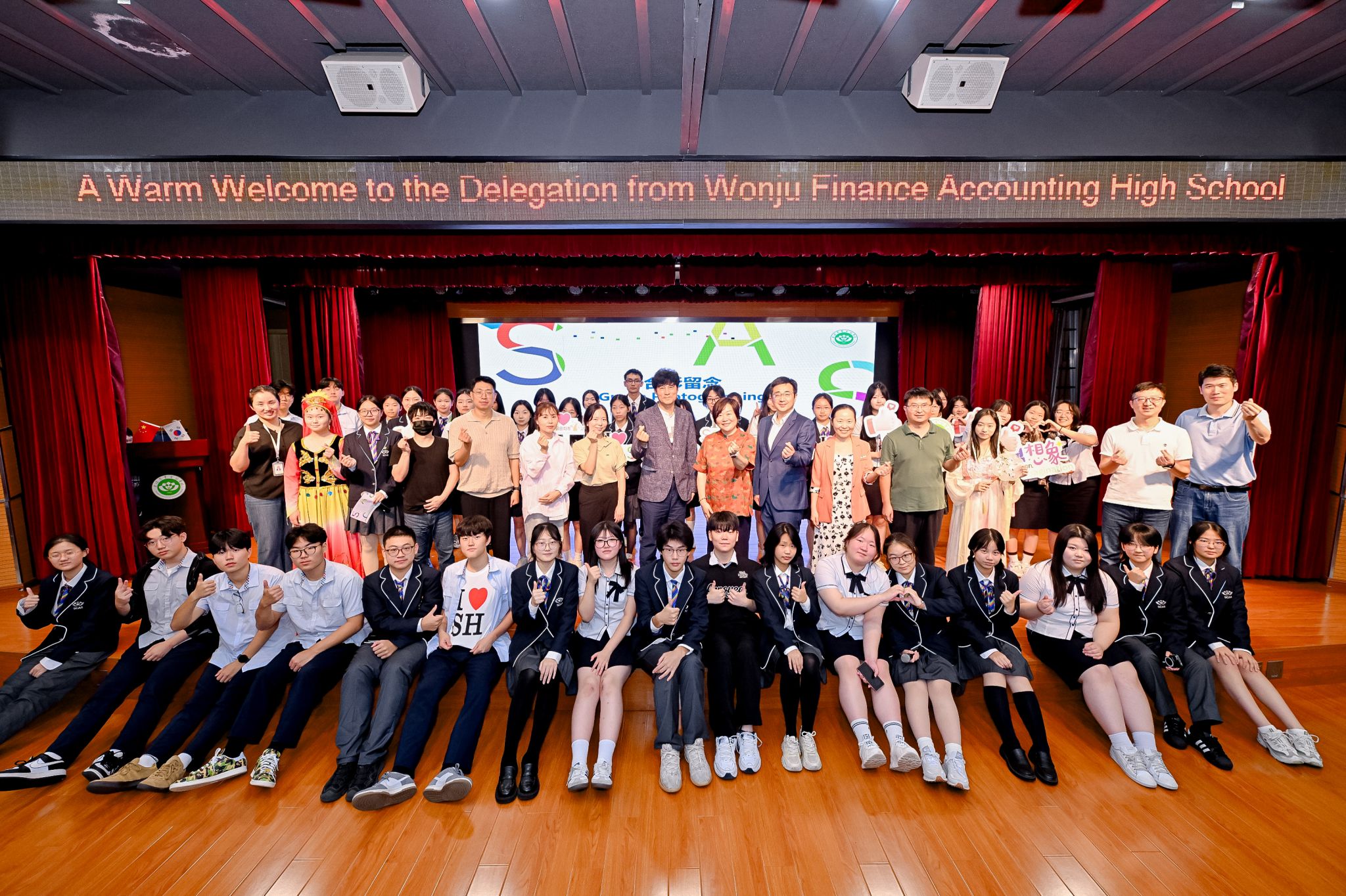 金秋十月,秋意渐浓,上海商业会计学校的校园里早早便萦绕着一份期待——师生们正热切盼望着韩国原州金融会计高中师生的到来。近日,这份期盼终于迎来圆满。2025年10月14日,韩国原州金融会计高中校长许阳旭带领的30名师生代表团来访,我校校长杨菁、党委书记陈震、行政办公室(外事办)、基础教学部、学生科等相关部门的老师以及学生国际交流团队(SCT)热情接待了该团组。