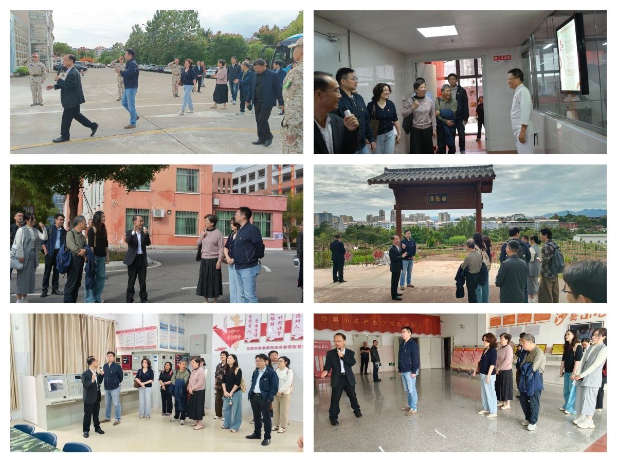 调研组成员先后参观了三明市农业学校的荣誉墙、校园宣传栏、劳动教育实践基地、教学楼、安全指挥中心、沙县小吃产业学院及各专业实训基地,通过现场观摩、互动询问等方式,深入了解学校在办学环境建设、劳动教育开展、行为规范管理、特色产业学院运营等方面的具体情况。