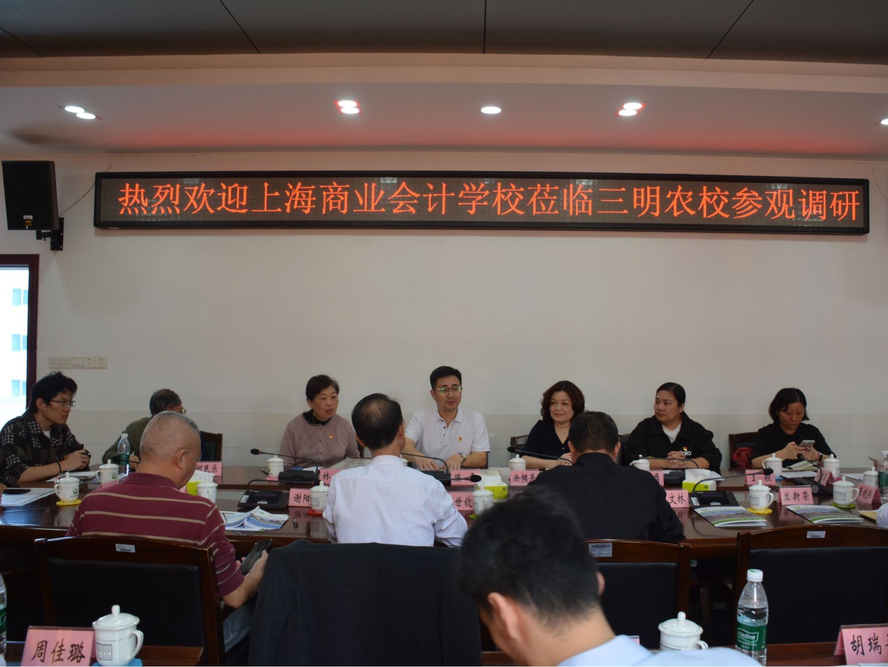近日,上海商业会计学校党委书记陈震、纪委书记徐帼芳带队,组织党办、支部支委、相关职能部门同志及统战对象、关工委老同志等15名教师代表,赴全国文明校园——福建三明市农业学校开展调研。三明海西生态工贸区管委会副主任王樟生、三明市农业学校党委书记罗世钦等陪同调研。
