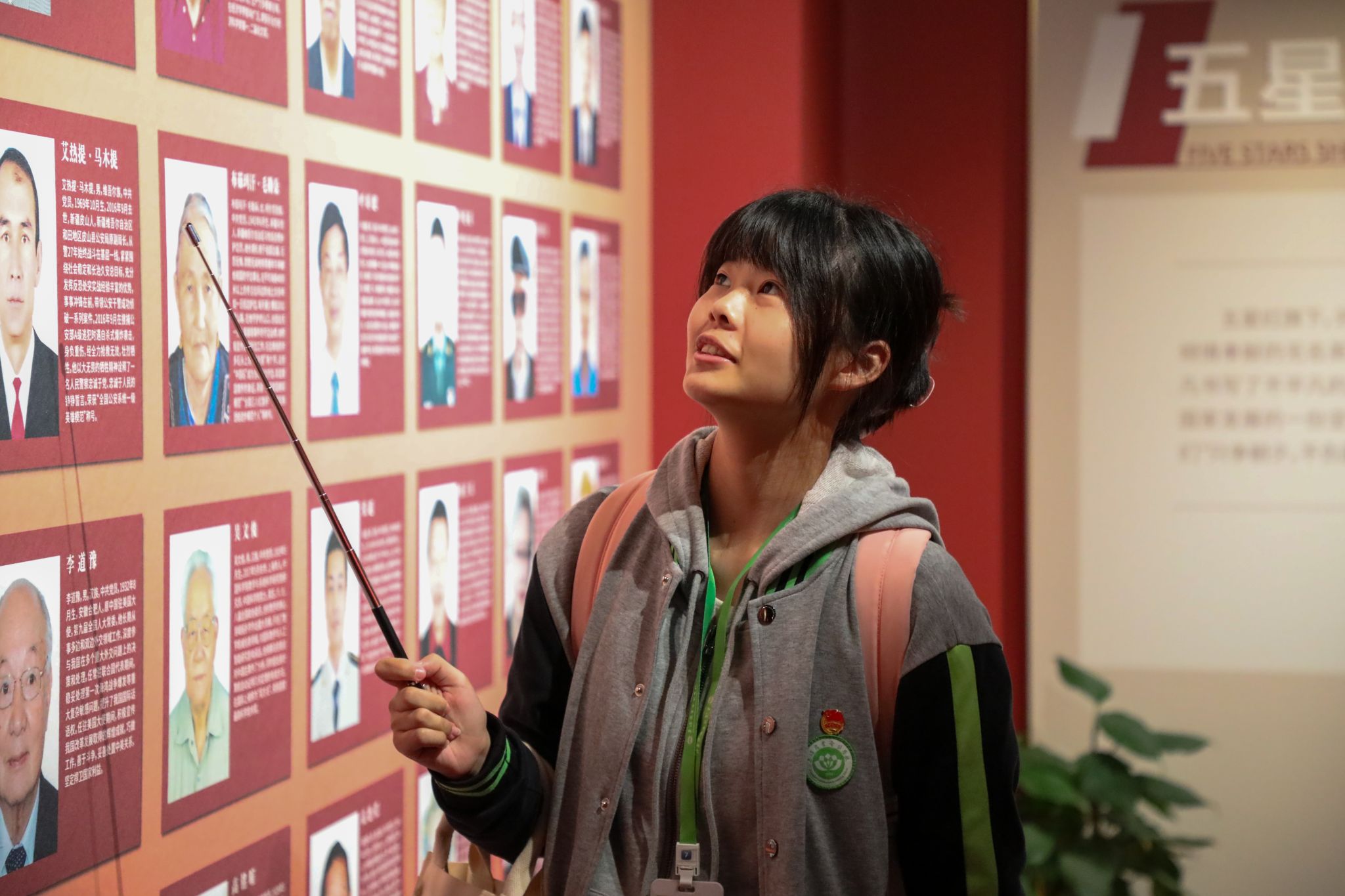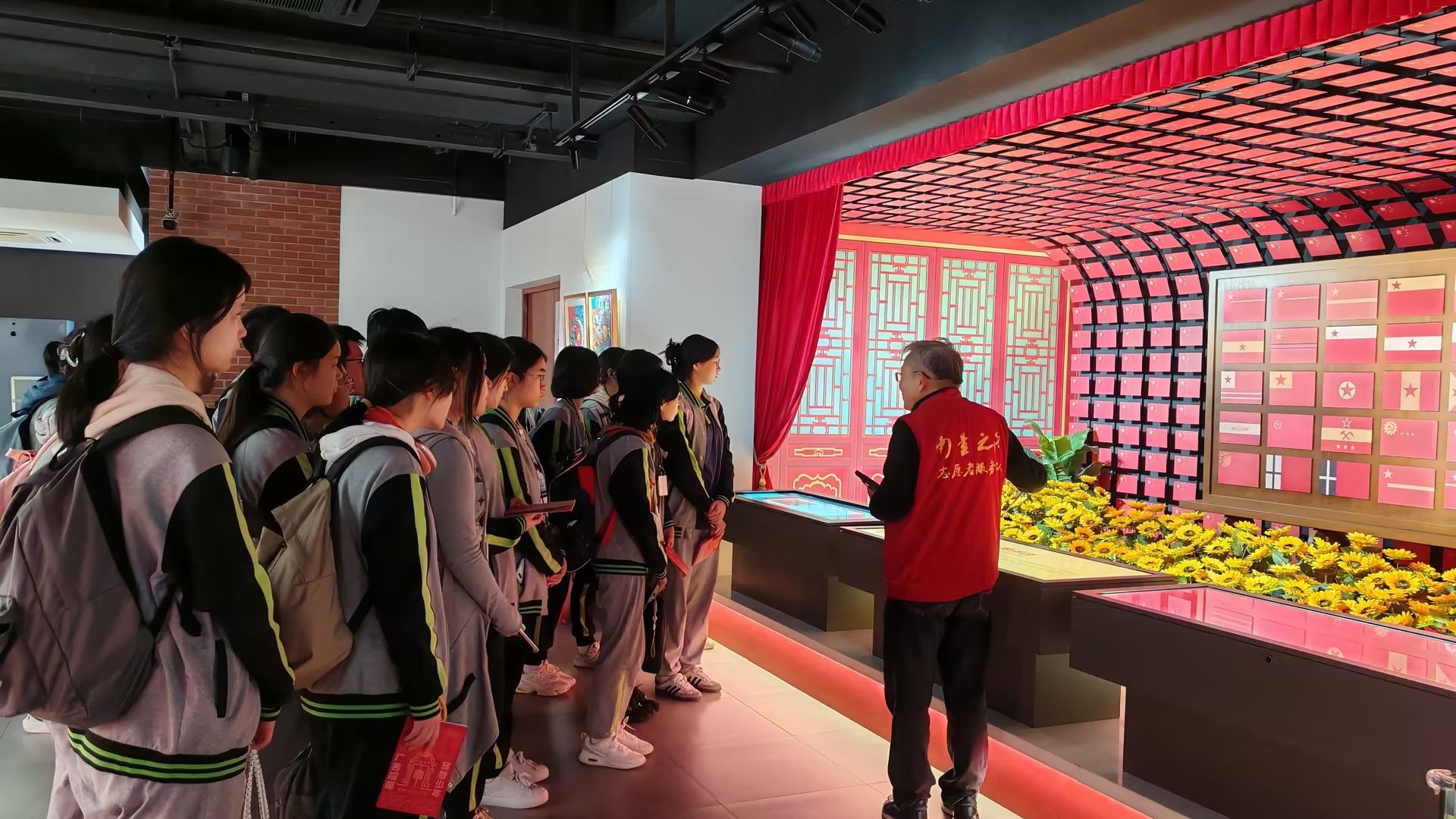 步入国旗教育展示馆,志愿者生动讲解了国旗的设计历程与象征意义。从曾联松的灵感迸发到开国大典上第一面五星红旗冉冉升起,同学们凝神聆听,仿佛穿越时空,感受到新中国成立时万众沸腾的豪情。通过对国旗法规、国旗故事的学习,大家进一步理解了国旗承载的民族尊严与爱国精神,中国与世界各国友好往来,国旗作为国家名片在国际场合飘扬的形象,体现大国担当和开放包容。