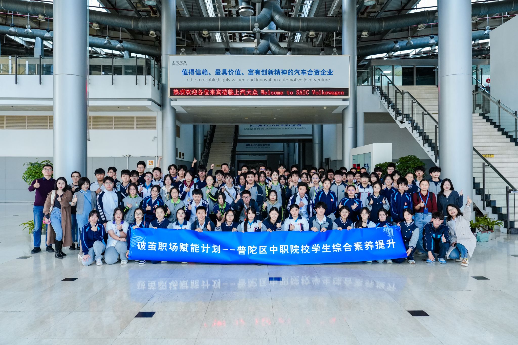 为深化产教融合,创新人才培养模式,切实提升普陀区中职院校学生的综合素养与实践能力,上海市普陀区职业教育联盟于2025年10月24日组织区内五所中职院校约100名优秀学生代表,走进国内汽车制造业的标杆企业——上汽大众汽车有限公司,开启一场兼具知识性与实践性的“沉浸式”工业研学之旅,为职教学子搭建起对接产业前沿、感受行业发展的重要桥梁。