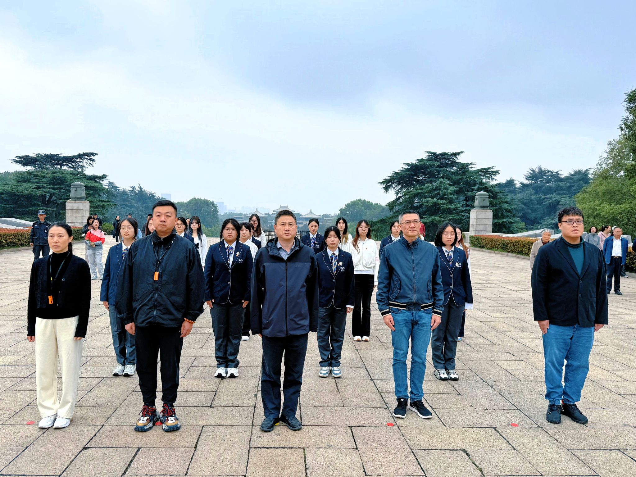 行程最后一天,全体成员赴雨花台烈士陵园举行庄严的缅怀仪式。在巍峨的革命纪念碑前,校领导和同学们一起向革命烈士敬献花篮、肃立默哀,在苍松翠柏间感受英烈精神的永恒光辉。这场沉浸式教育让团学干部们深刻认识到,要将个人理想融入国家发展和中华民族复兴大局,用实干担当传承红色基因。