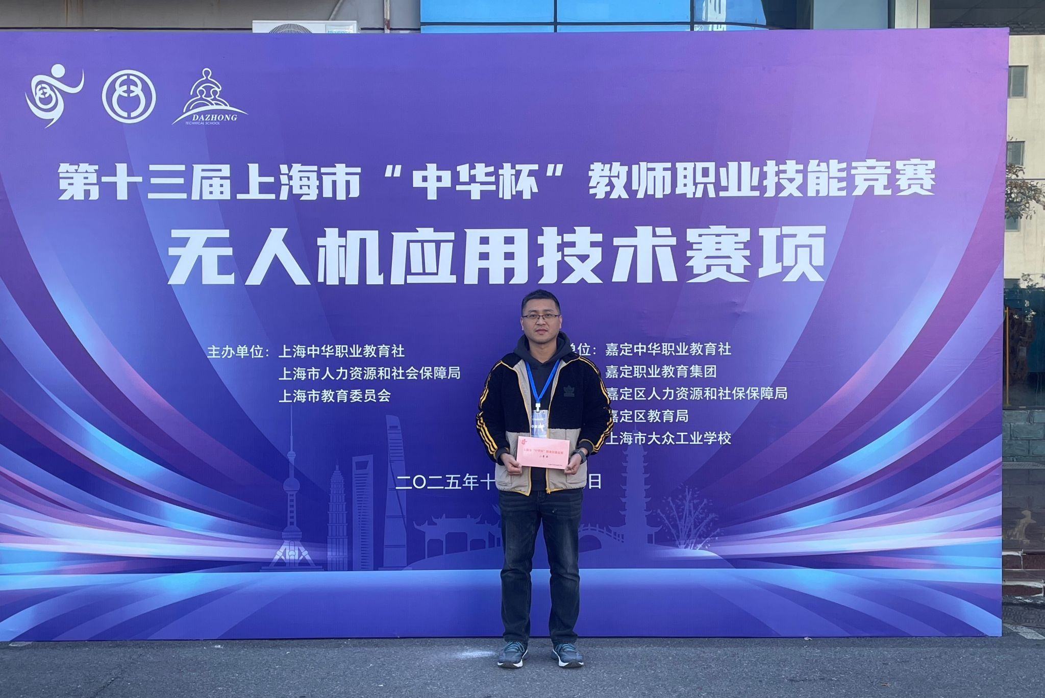 2025年11月29日,第十三届上海市“中华杯”教师职业技能竞赛无人机应用技术赛项在上海市大众工业学校圆满落下帷幕。我校无人机专业教师林云龙,凭借扎实的专业技能、出色的应变能力和不懈的努力,在众多参赛选手中脱颖而出,荣获本次竞赛的二等奖,为学校赢得了荣誉。