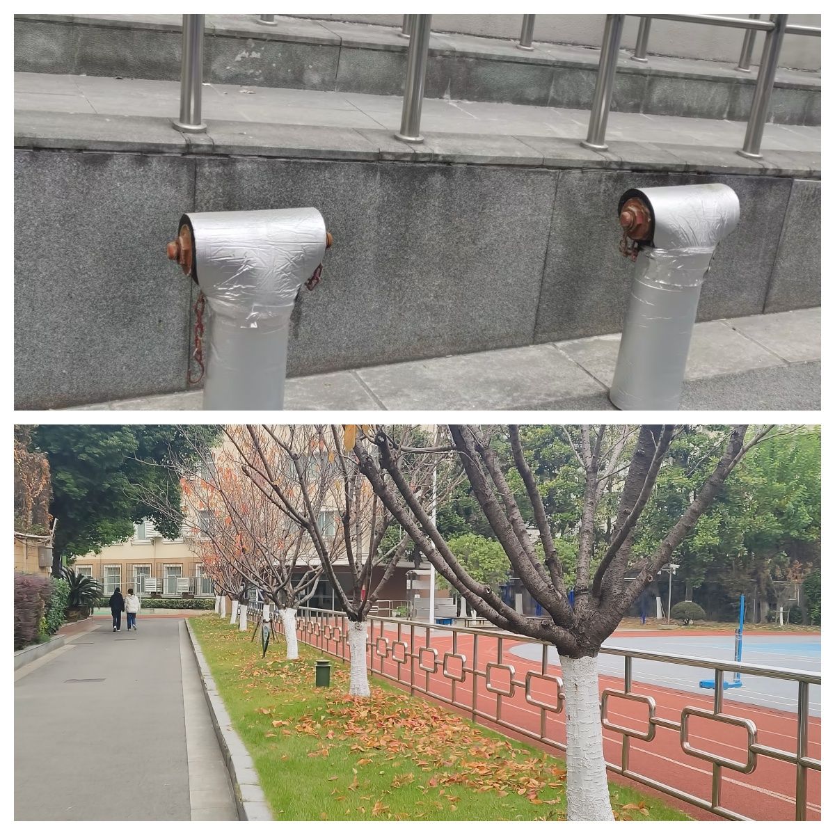 冬季是校园安全重点时期。校区办从三方面进行积极应对:设施防护方面,为树木刷石灰、包裹裸露水管、疏通积水区;物资储备与应急方面,备足防冻物资,制定应急预案;宣传引导方面,通过多渠道发布保暖提示,普及安全知识。以上措施全方位守护师生过冬与校园安全运行。