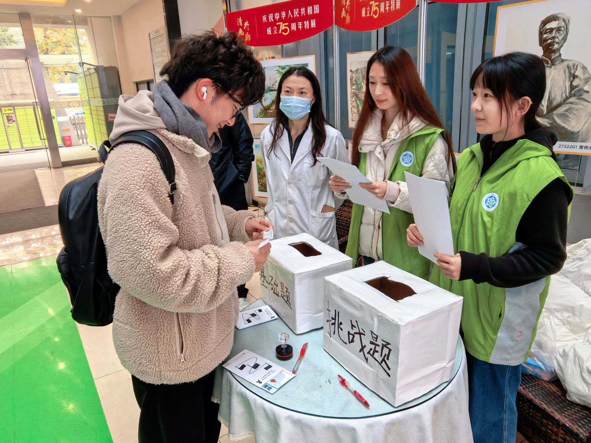 清晨,寒风依旧裹挟着低温侵袭着校园,但丝毫没有吹散大家对工作的热情,学生志愿者们准时来到10号楼一楼大厅向各位师生发放宣传手册,并主动介绍本次活动的流程,引导同学们积极参与活动。